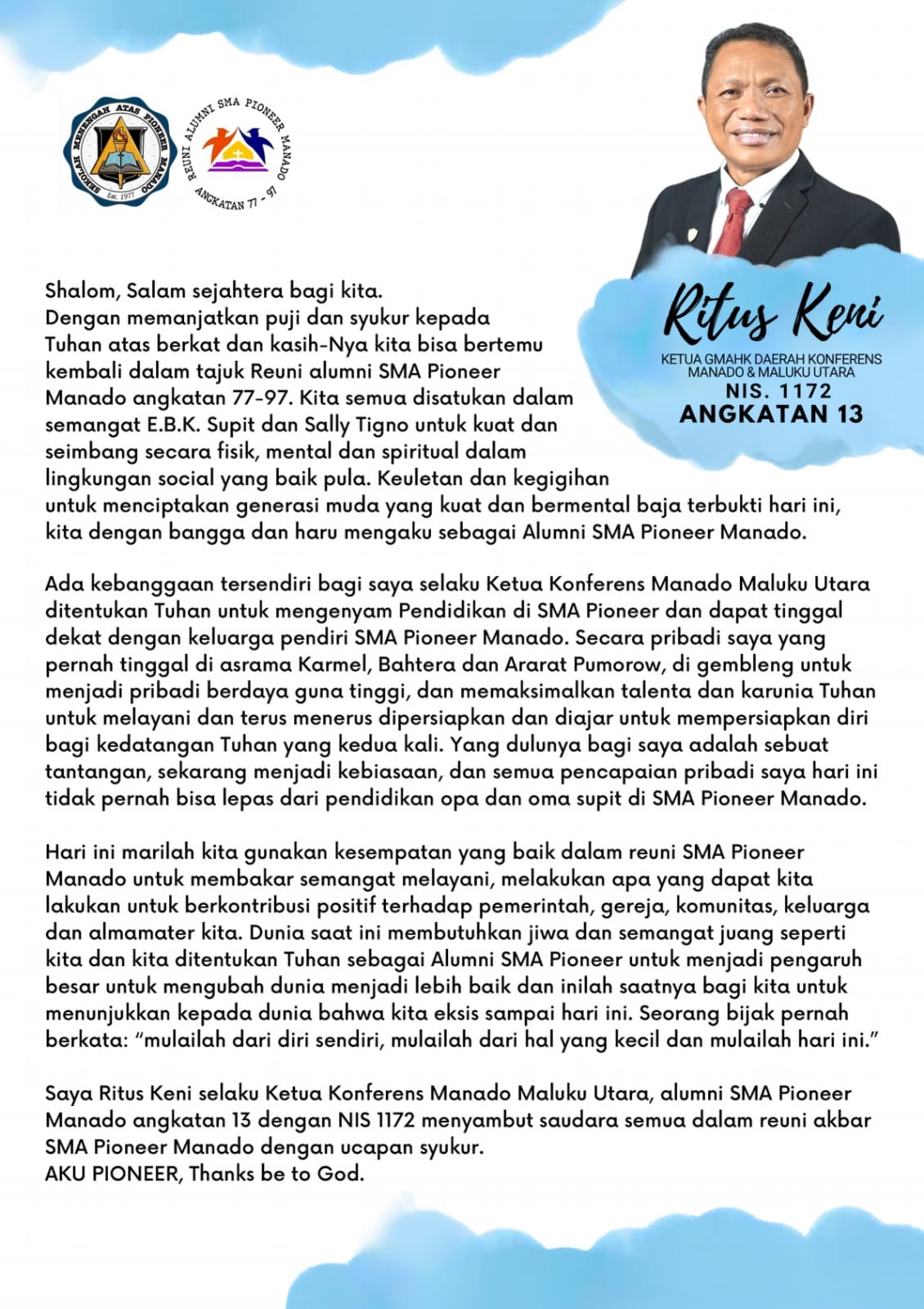 Syalom, Selamat Datang di Reuni Akbar Alumni SMAPIO Manado